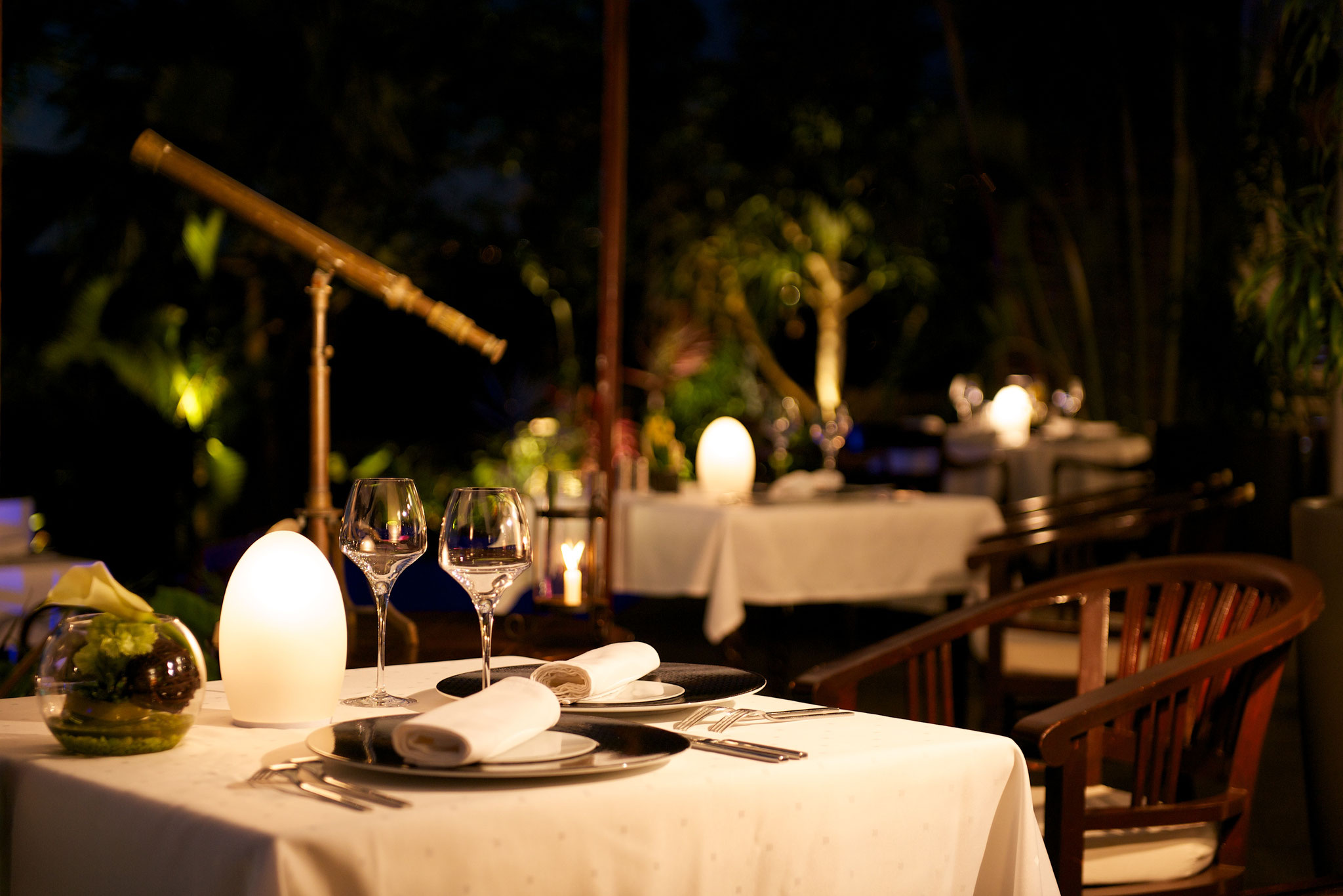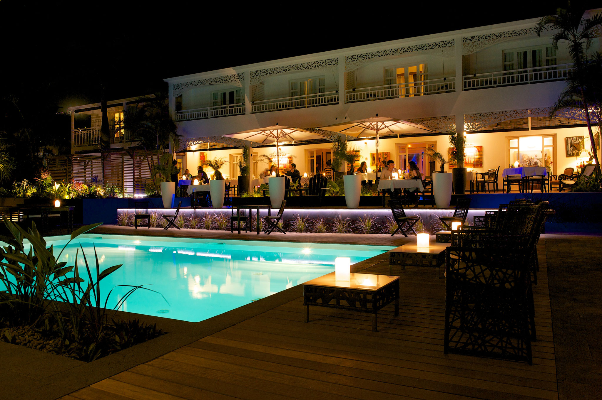 Une carte de vin de plus de 300 références ainsi qu'une carte de champagnes donnent à la clarté des nuits créoles cette transparence qu'on ne trouve que sous les Tropiques.