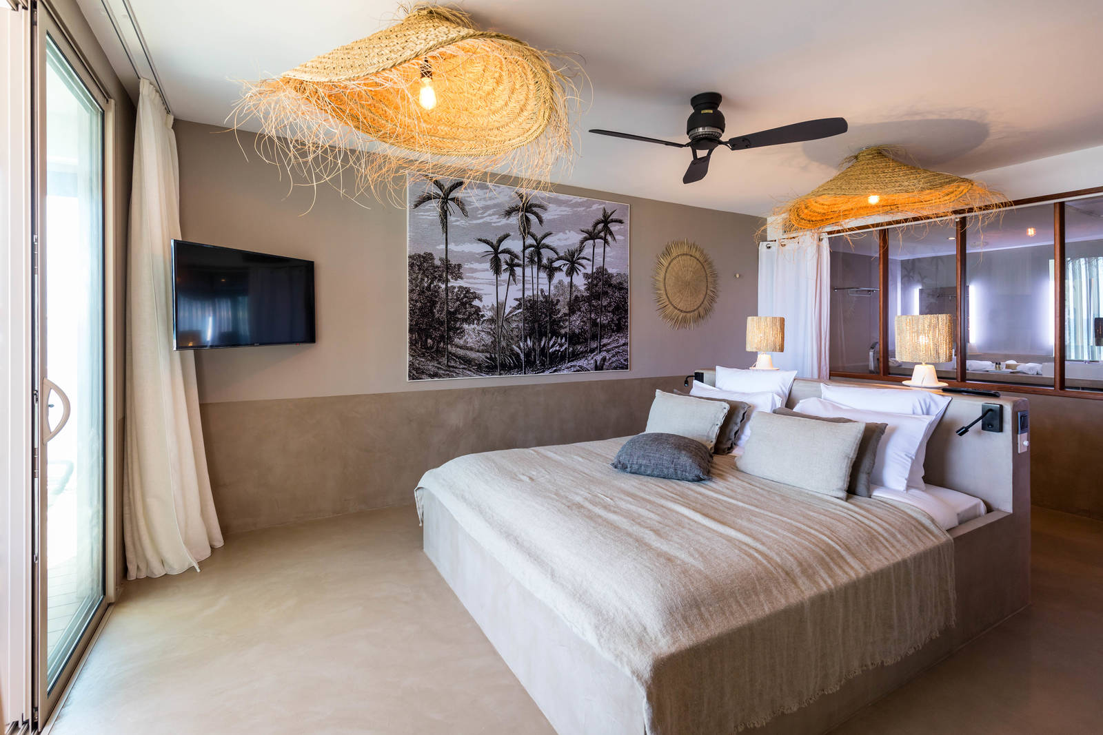 La suite océan offre une superficie de 53 m² de plaisir et de détente, 18 m² de terrasse avec accès direct à une petite crique aux eaux cristalline et
