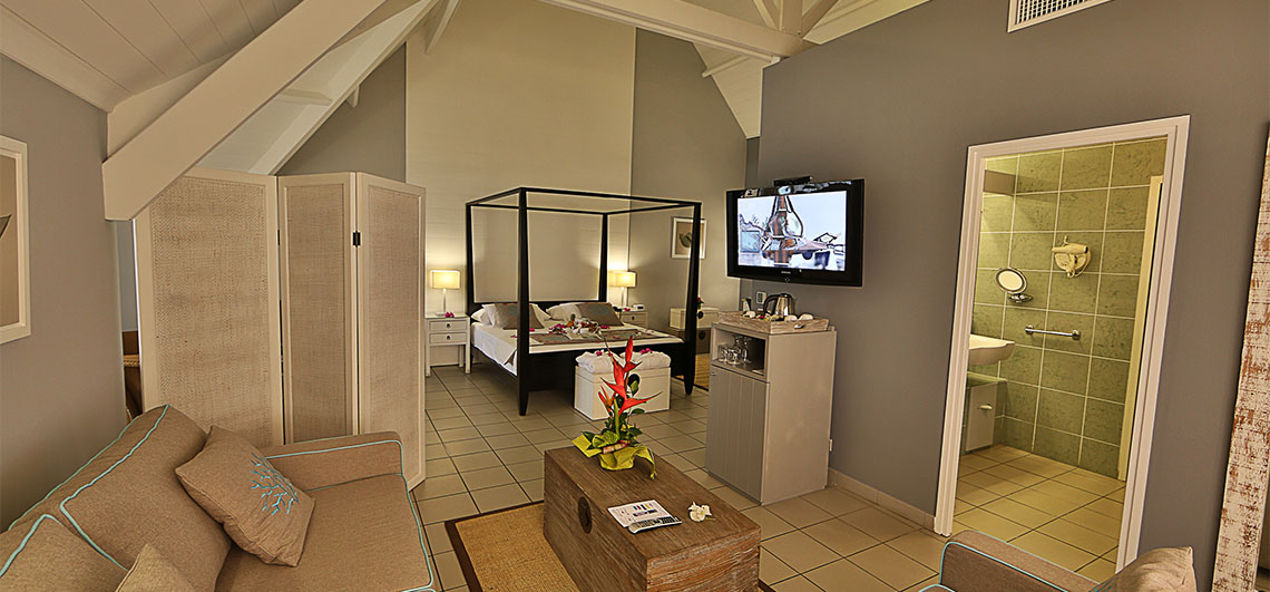 Composée de 32 Chambres Deluxe vue océan ou lagon de 28 m², de 2 Chambres Deluxe vue patio (28 m²), de 2 Chambres Deluxe pour personne à mobilité réduite vue montagne de28 m².