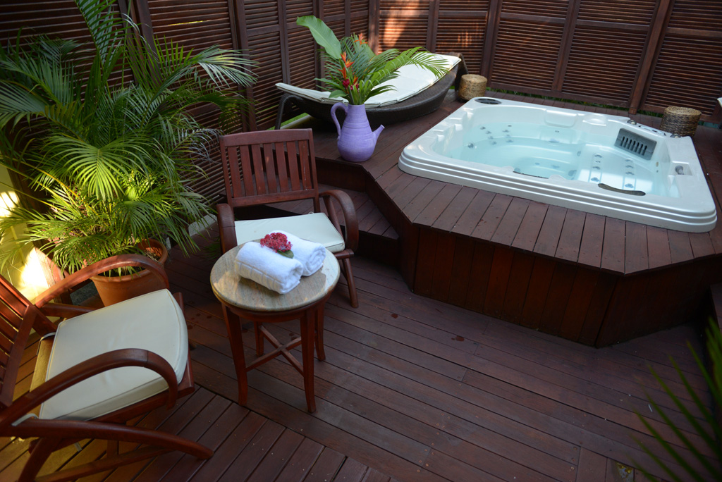 Les suites supérieures avec jacuzzi de 54m2 aménagée d'une terrasse de 12m2, vous offre prestation d'une chambre avec literie haut de gamme, un salon aménagé, salle de bain avec baignoire et sèche cheveux, climatisation, télévision à écran plat, coffre fort, Wifi gratuit, mini bar. Capacité d'accueil 2 adultes, 1 bébé.