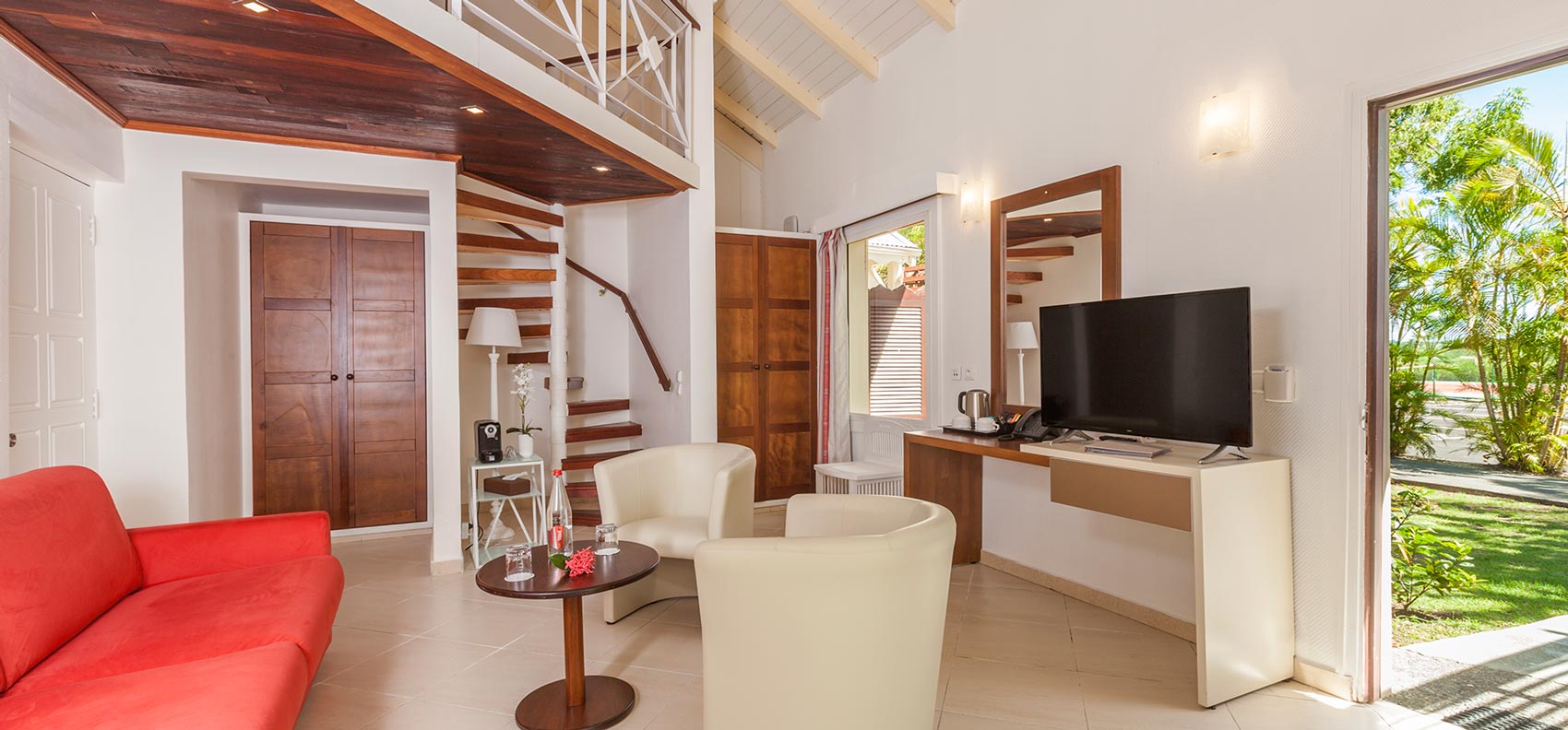 Composée de 40 bungalows et 20 suites dont 15 suites junior et 5 suites supérieures avec jacuzzi, au style antillais. Un magnifique moulin de l' époque sucrière surplombe le parc et vous raconte l'histoire de nos îles.