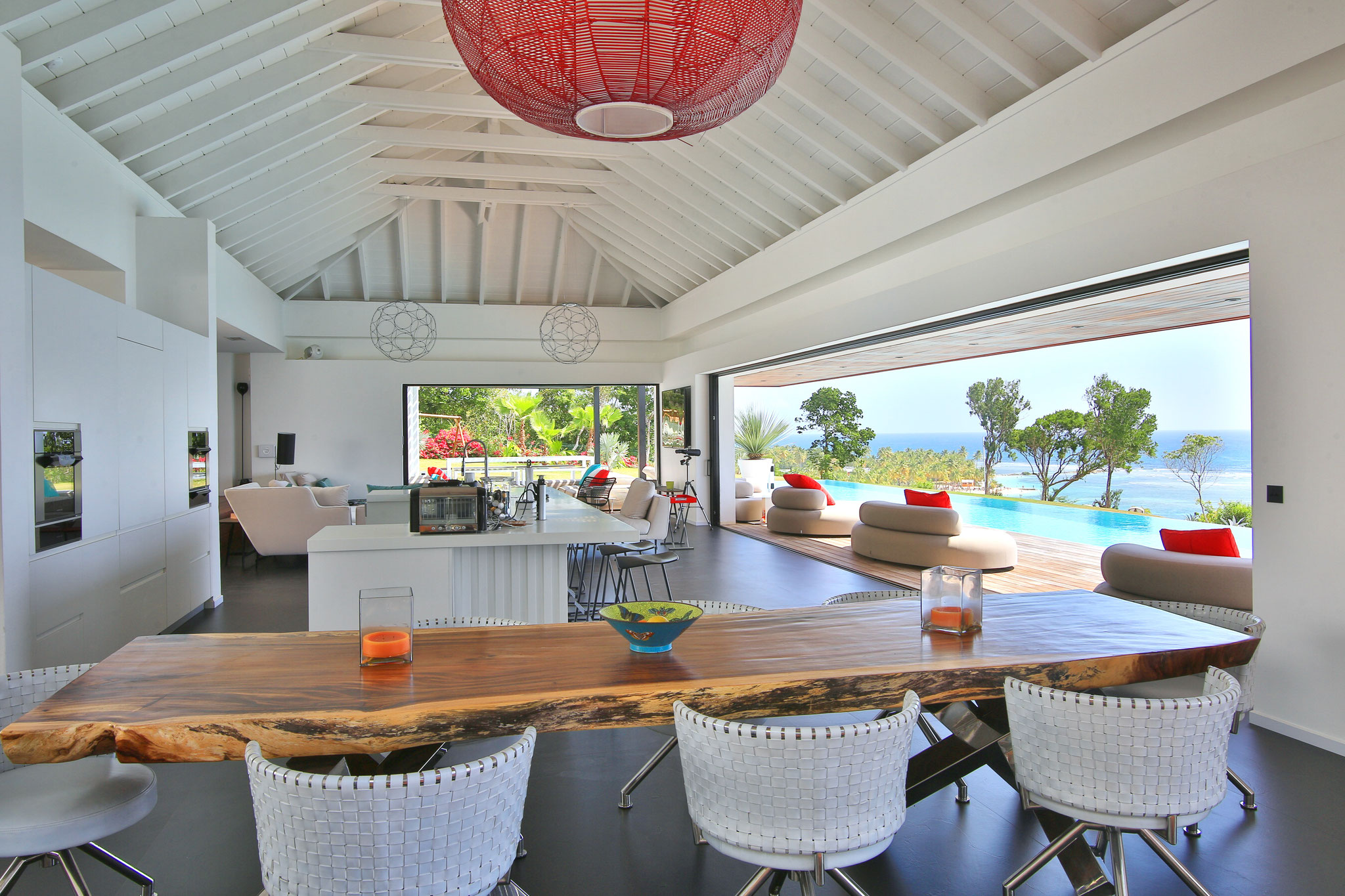 Composée d' une piscine, jacuzzi, vue mer panoramique. Villa contemporaine proche de l’Hôtel Toubana. Elle est dotée de 300 m² , deck 100 m². Terrain 2000 m², la plage se situe à 100 m. 5 pièces, dont 2 suites, 2 chambres. Capacité 8 à 12 personnes et 2 bébés.