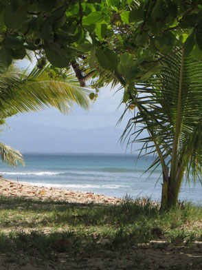 Plage de Moustique, Trou Massacre, point de vue sur la Guadeloupe, sur l'anse Vieux Fort et son îlet, plage du massacre. Attention aux mancenilliers en bord de mer repérables.