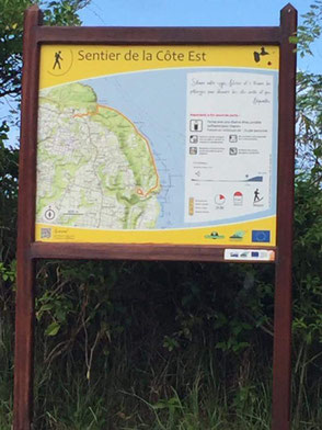 De la plage la Feuillère ancienne usine Bernard, moulin d'Hélouin, point de vue sur la Dominique, montée abrupte, le sentier vous mène sur un des plateaux de Marie-Galante, offrant des points de vues remarquables sur le lagon.
