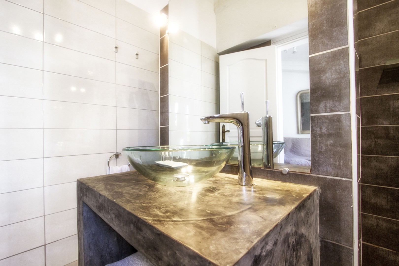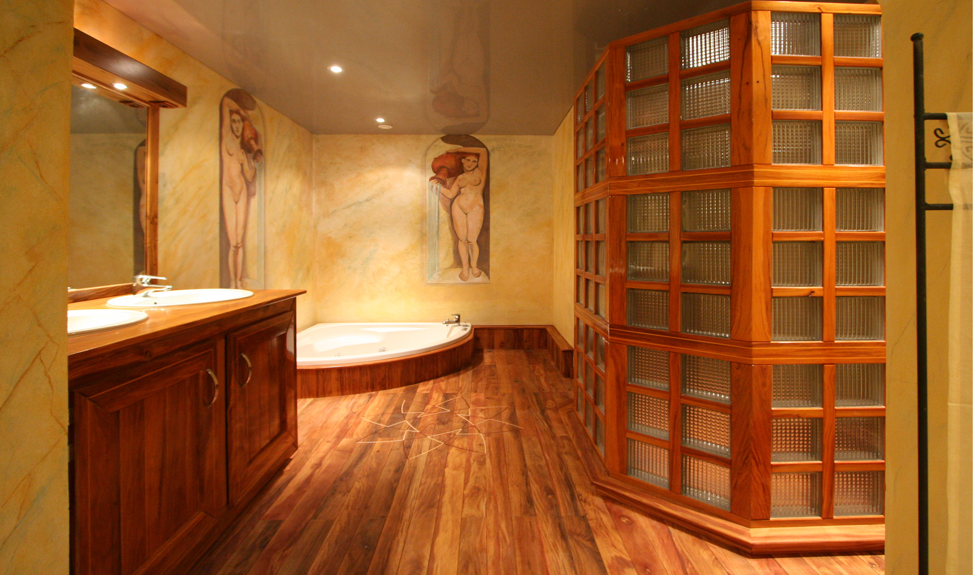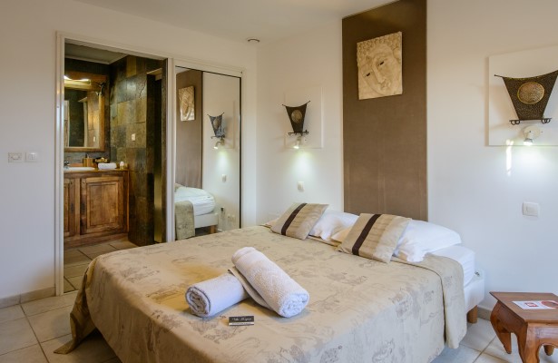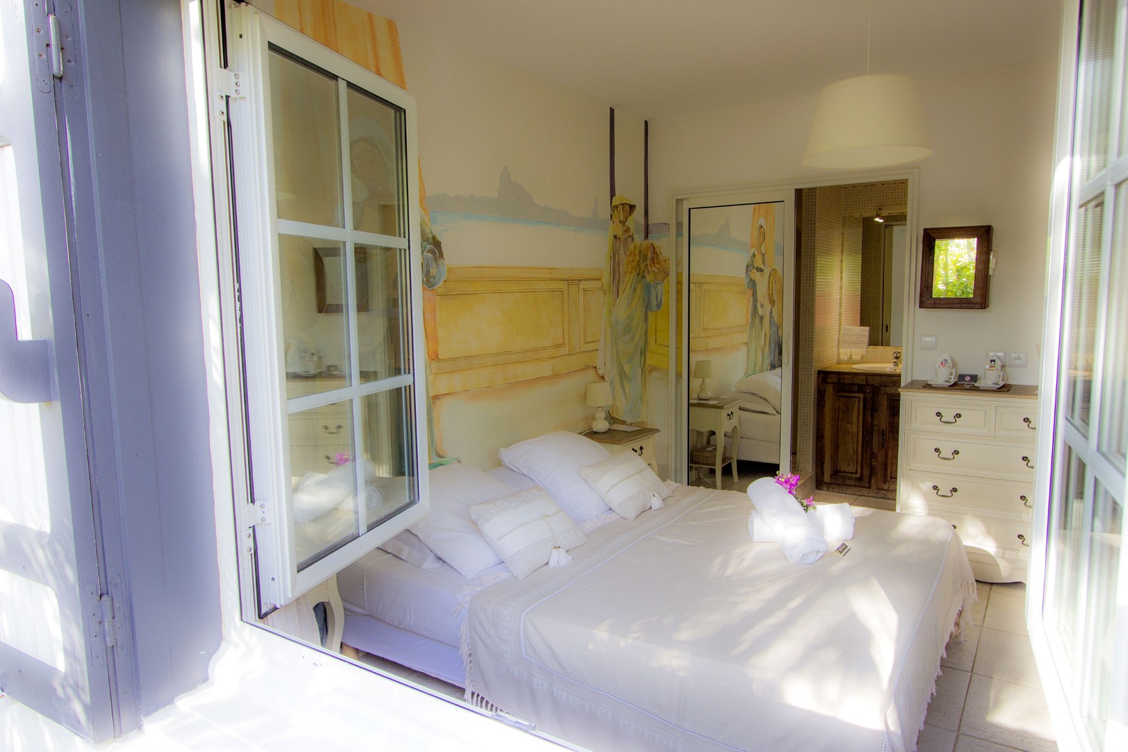 Suite nuptiale Pompéi . Plongez-vous dans un voyage au cœur des thermes de la Rome antique: suite de 50 m2 située en rez de jardin. Fresques murales dans toutes les pièces. Lit à baldaquin, marqueterie et bois précieux, grande salle de bain avec douche à l’italienne et baignoire balnéo. Mini bar, air conditionné, Tv par satellite, WIFI gratuit, plateau de courtoisie, produits d’accueil, peignoirs , sèche-cheveux, serviettes de piscine Capacité 2 personnes.