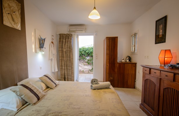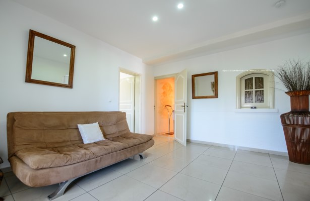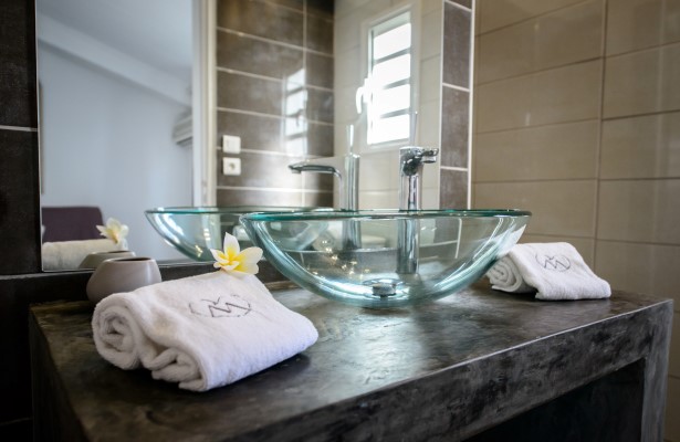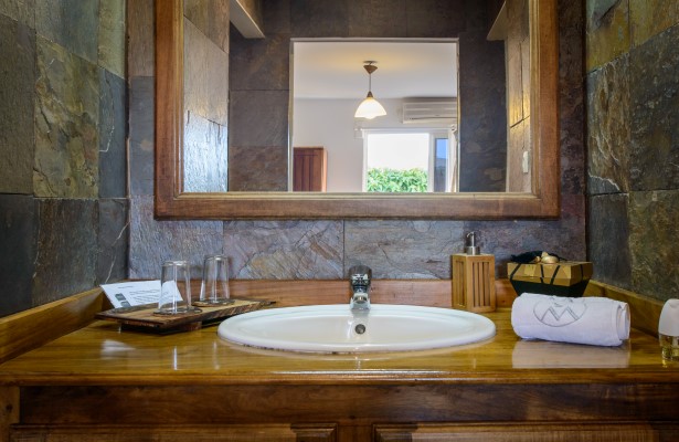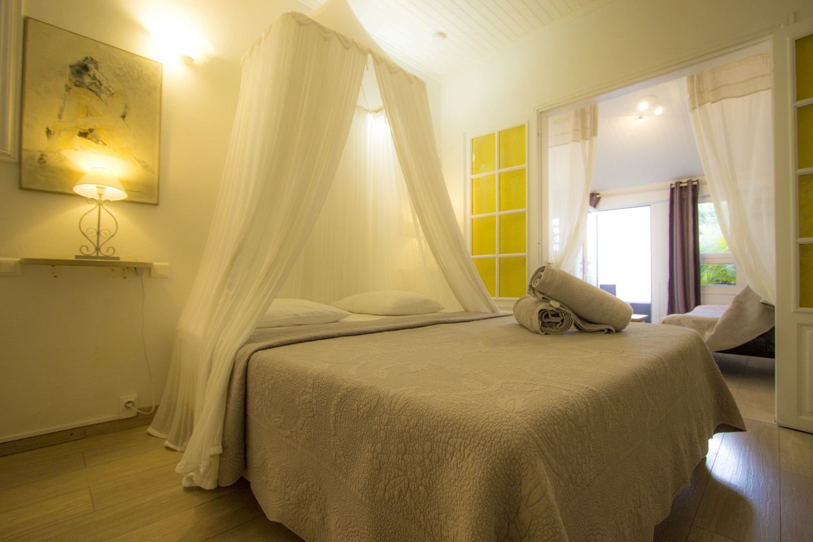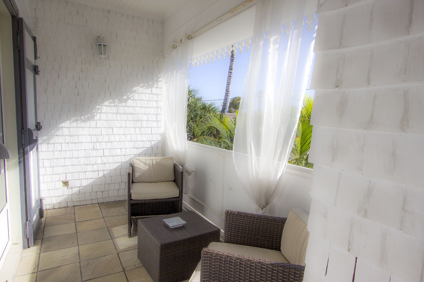 Suite de 80 m² située au première étage de la Villa, comprenant 2 chambres individuelles et un vaste séjour avec vue panoramique sur l’océan indien et sur le jardin .