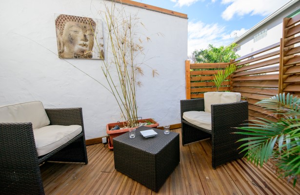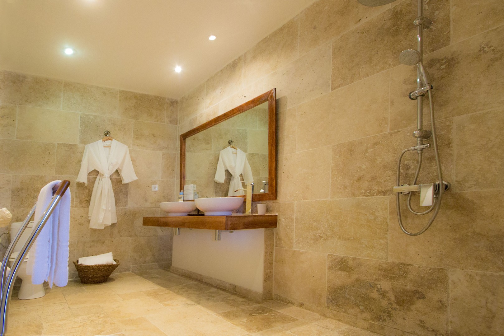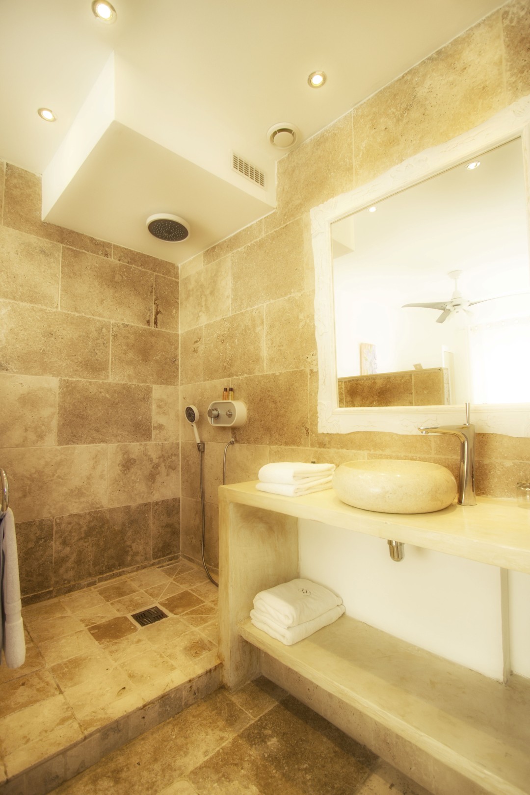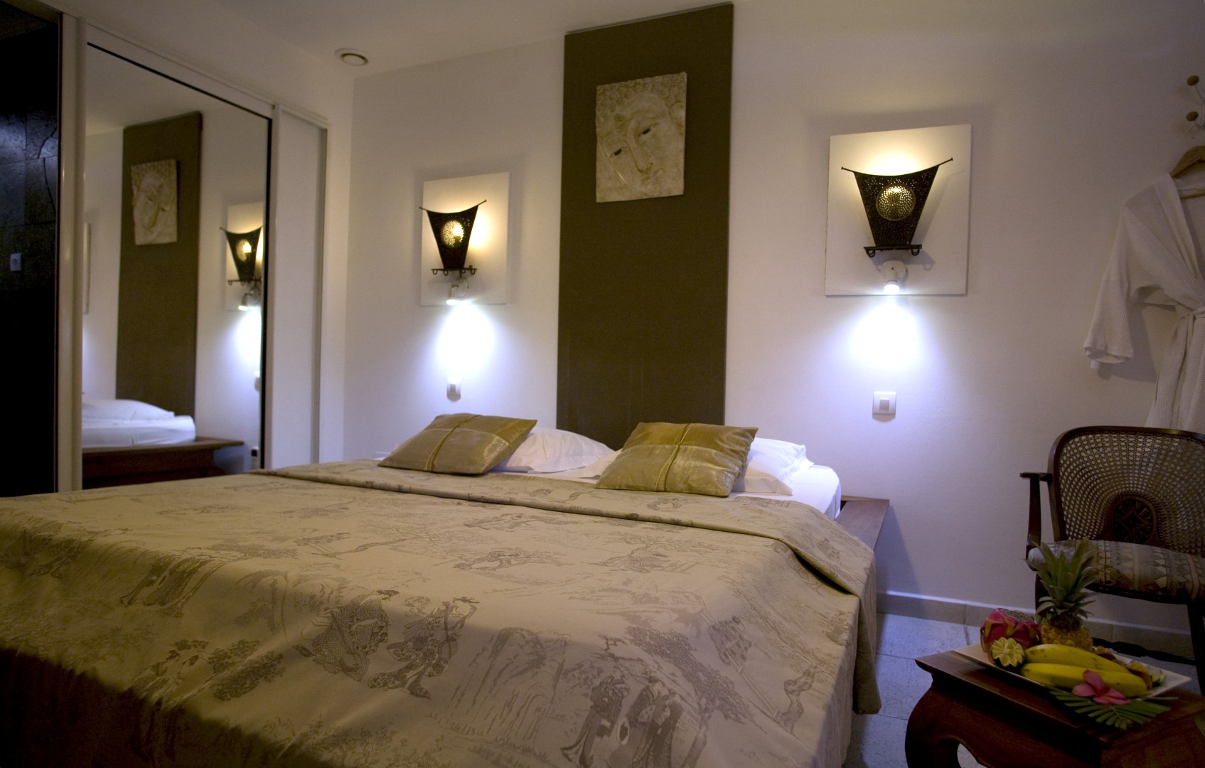 Suite de 80 m² située au première étage de la Villa, comprenant 2 chambres individuelles et un vaste séjour avec vue panoramique sur l’océan indien et sur le jardin .